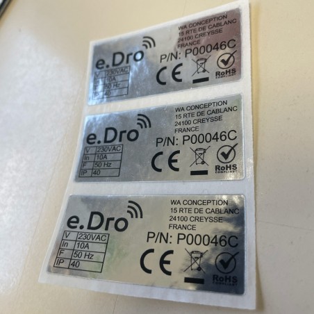 Avant d'imprimer, on passe sur votre fichier pour vérifier que tout est lisible et bien placé. Si vous avez besoin d'ajouter le logo "Apiculteur de France" ou le pictogramme Info-Tri, on gère — notre impression HD sort les petits détails sans bavure.