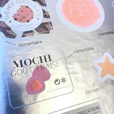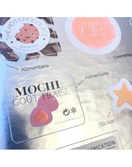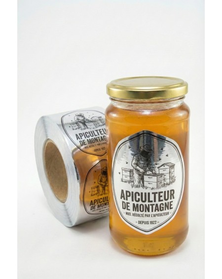 C'est du plastique souple, imperméable. Si vous faites les marchés, c'est un vrai plus : une coulure de miel sur le pot, un coup d'éponge et c'est propre. L'étiquette ne bouge pas. On le conseille aussi pour les gros formats (pots de 1 kg) qui restent longtemps en stock.