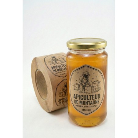 C'est le choix de la plupart des apiculteurs qui vendent en circuit court. L'aspect brun, un peu brut, ça renforce votre côté artisanal. Sur un bocal en verre avec un miel de forêt bien foncé, c'est très joli. Par contre, le Kraft craint l'humidité, si vous stockez dans une cave fraîche ou si du miel coule sur le pot, l'étiquette peut gondoler.